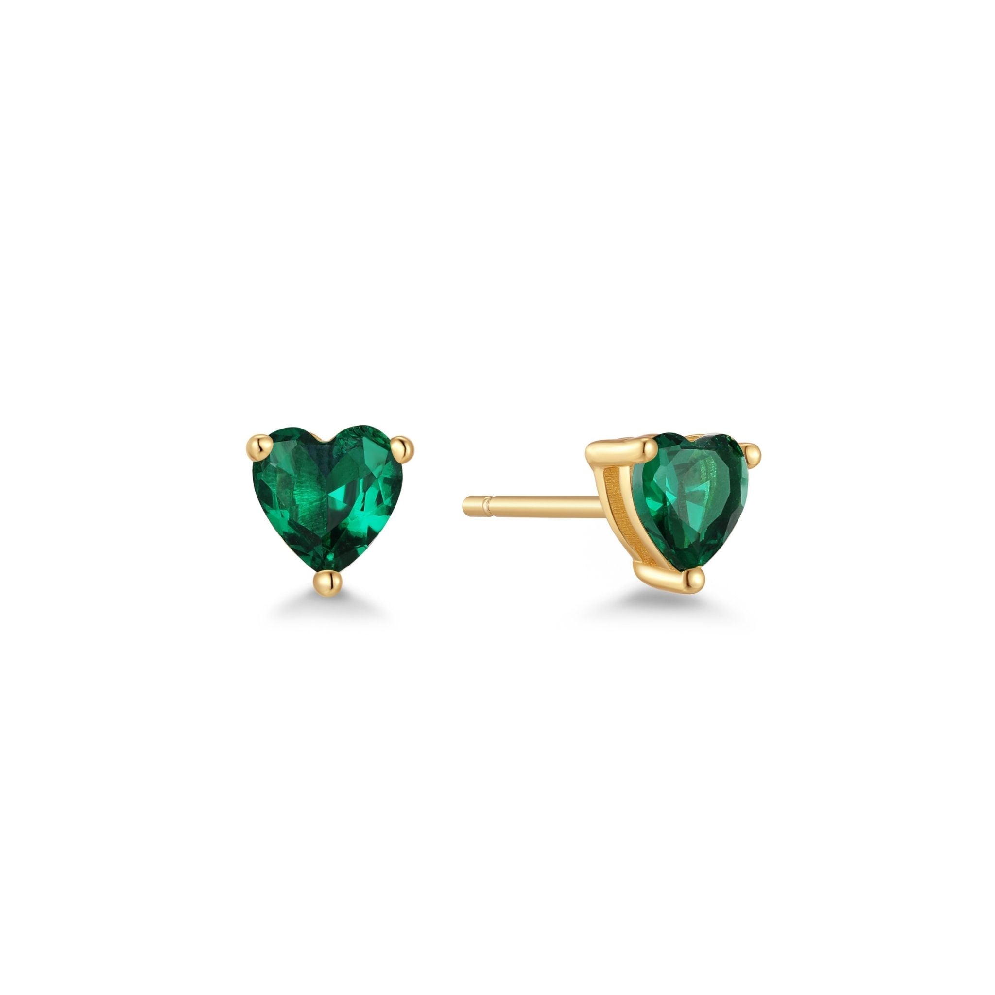 A gorgeous pair of earrings adds the perfect finishing touch to any outfit. These stunning emerald green heart shaped stud earrings are made from cubic zirconia and set in a 14K Gold Plated colored setting. The high quality cubic zirconia stones sparkle brightly in any light as they help make you shine brighter than the rest with these bright shiny earrings.