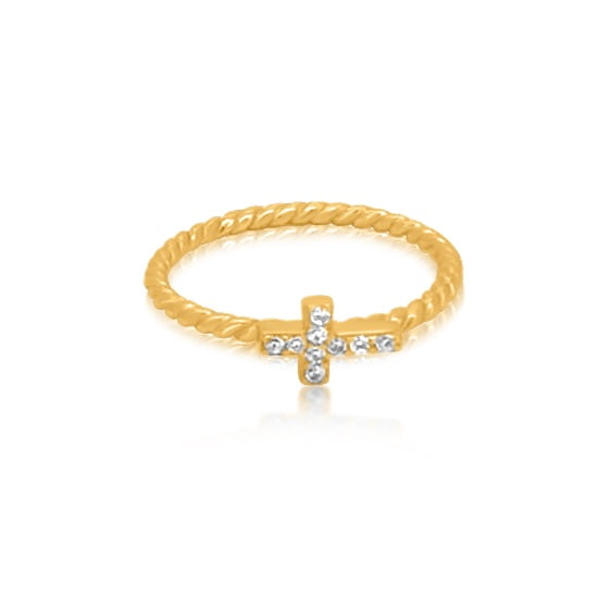Be the light with ELLA: a dainty, rope pave cross ring that exudes beauty and grace. Designed with elegant yet minimal details, this ring will bring a touch of subtle radiance to any outfit. Wear ELLA and be your shining self!