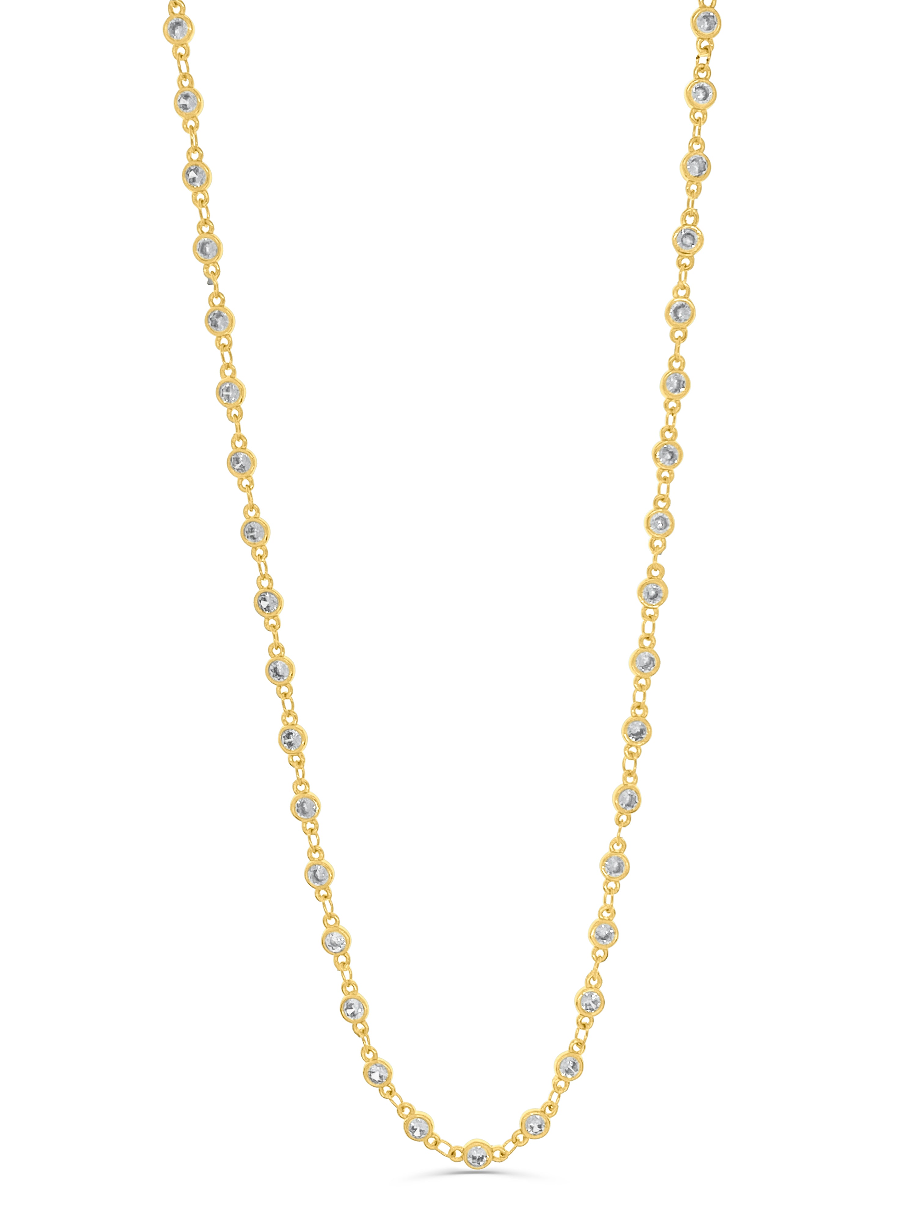 The KENNA necklace is a timeless classic, crafted with sparkling cubic zirconia gems for a luxurious glimmer. This best-selling necklace will make a statement in any wardrobe, whether you pair it with an evening gown or dress down with a blouse. Add a touch of classic elegance to your everyday look with the KENNA necklace.