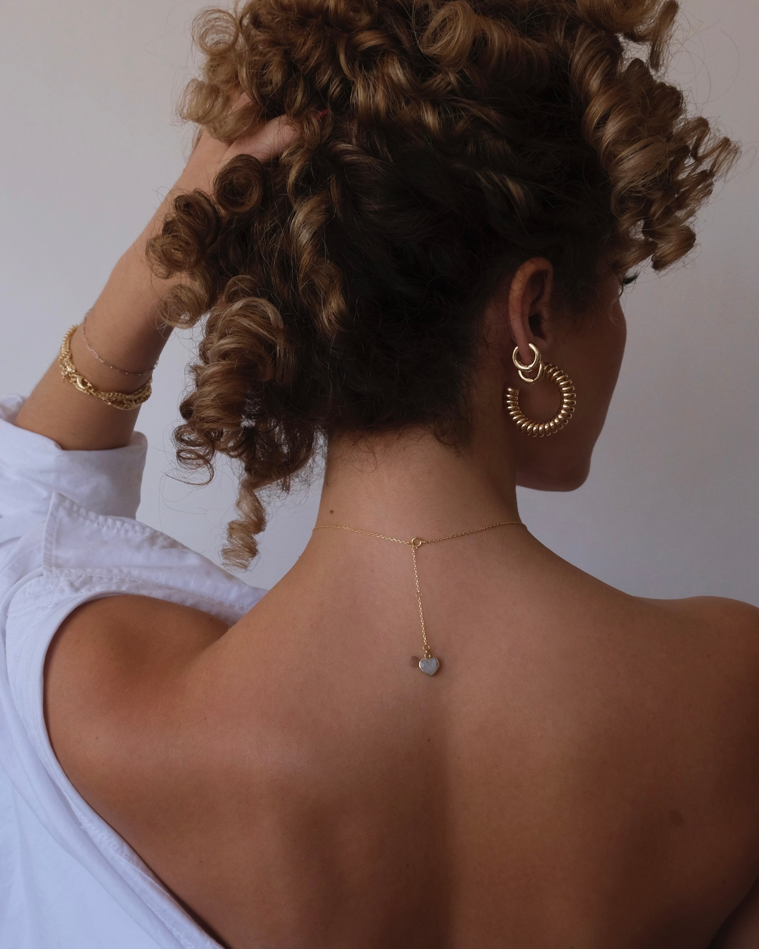 Celebrate the maternal love with the SUNSHINE mama necklace! This exquisite piece of jewelry is designed to celebrate the mothers around the world and make them feel special. Made with high-quality materials and dipped in 14k gold, this necklace exudes elegance and sophistication. The natural moonstone gemstone heart at the end of its extender adds a touch of charm to the overall design. Our gold mama necklace is perfect for any occasion, whether it's a birthday, anniversary, or just to show your appreciation for your mom's endless love and care. It is a piece of jewelry that your mom will cherish for years to come.