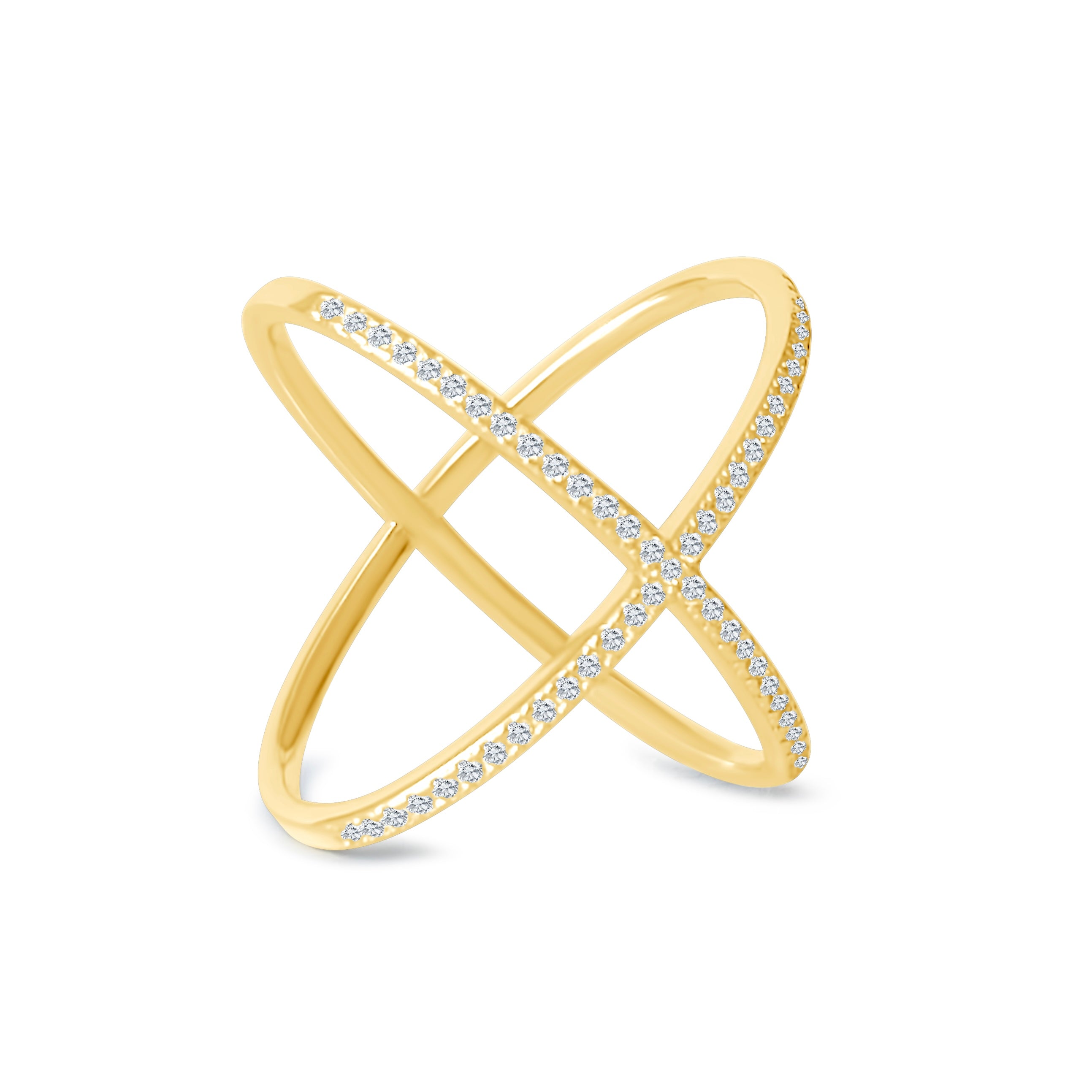 This modern and elegant ring is the perfect accessory to add sparkle to your everyday life. The minimal pave X design can be worn on any finger and will continue to look chic beyond trends.