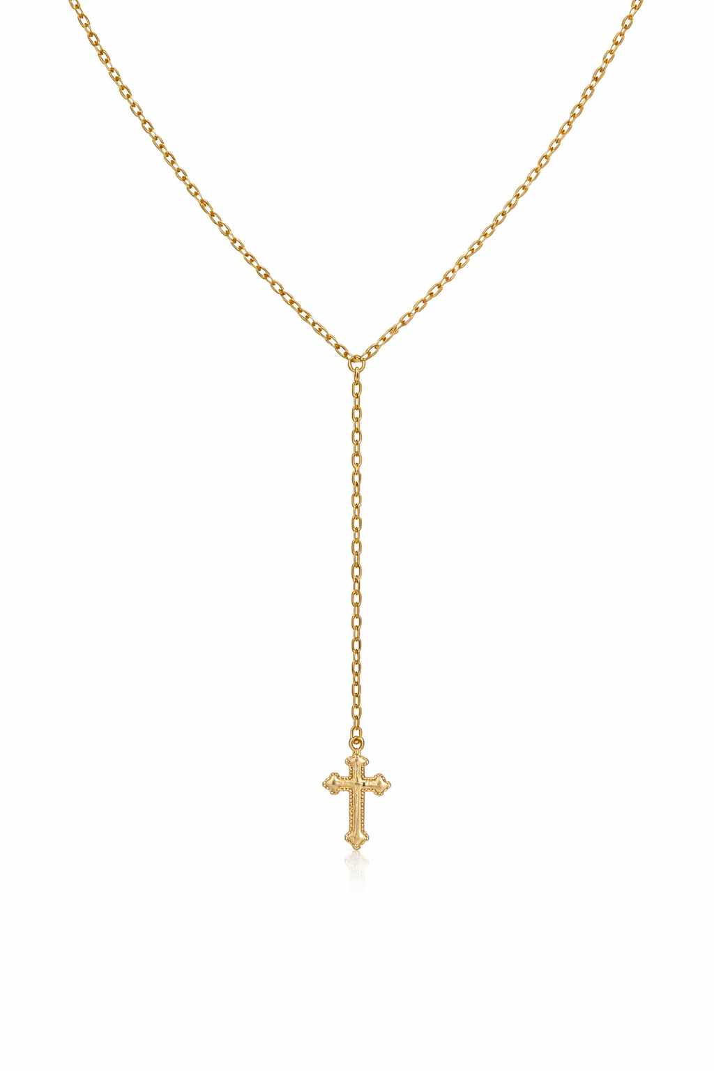 Elevate your everyday elegance with the DIVINA cross lariat—a timeless piece that seamlessly transitions from day to night. This versatile necklace features a graceful cross pendant suspended from a delicate lariat chain, allowing you to adjust the length to suit your style. Perfect for layering or wearing solo, the DIVINA combines spiritual symbolism with modern sophistication. Crafted for those who appreciate meaningful jewelry that makes a statement without demanding attention.