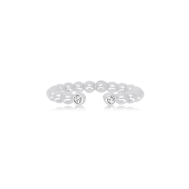 Enhance your jewelry collection with this stunning 18k vermeil ring. Carefully crafted with two round cut cubic zirconia, it boasts an elegant and simplistic design. The delicate beaded pave detail adds a touch of sophistication, making it the perfect foundation for your bold stacking look.