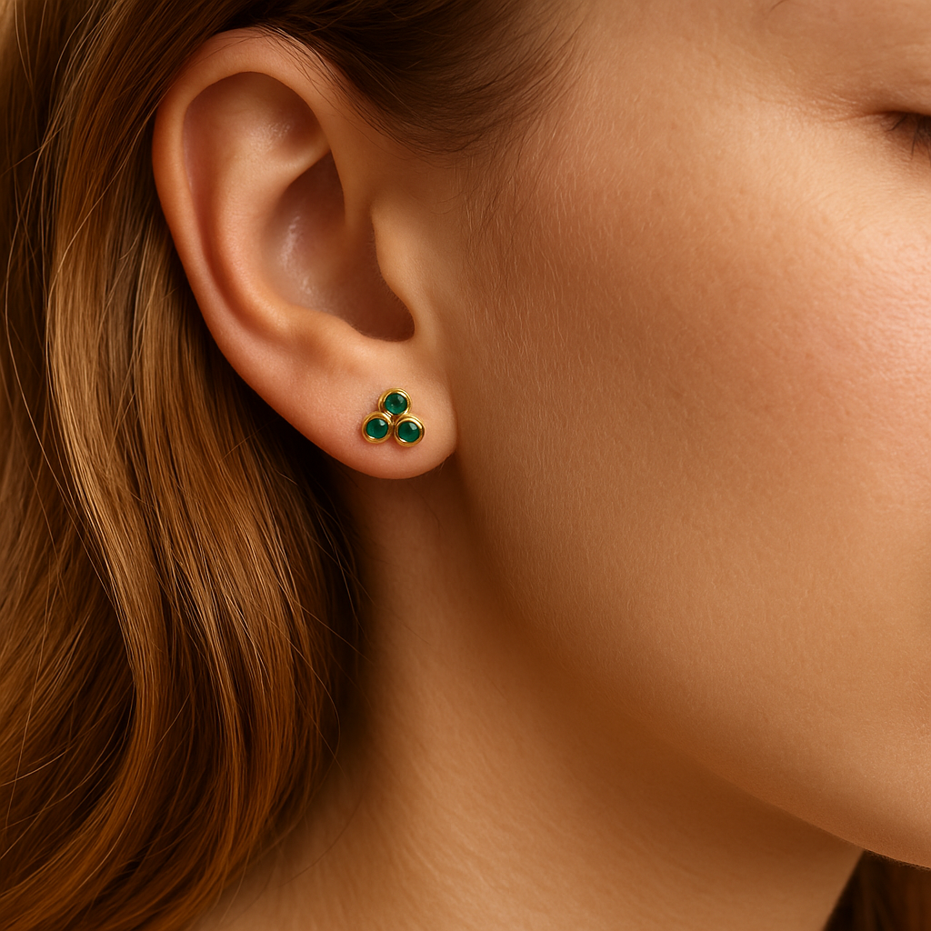 Elevate everyday elegance with timeless sophistication. The Ismera Studs feature a trio of carefully selected stones that catch the light beautifully, adding just the right touch of sparkle to any look.