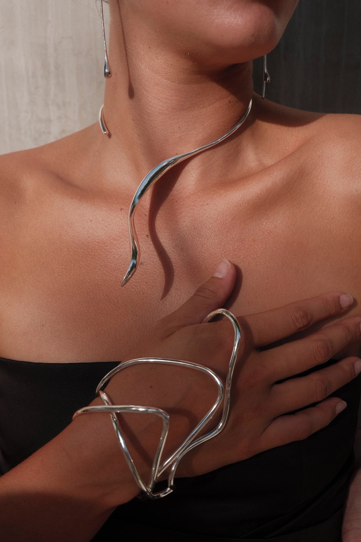 Bringing a refreshing touch of modernity and trend, it is crafted in noble metals with gold and silver plating. Its polished finish unveils a bold and alluring pieces.