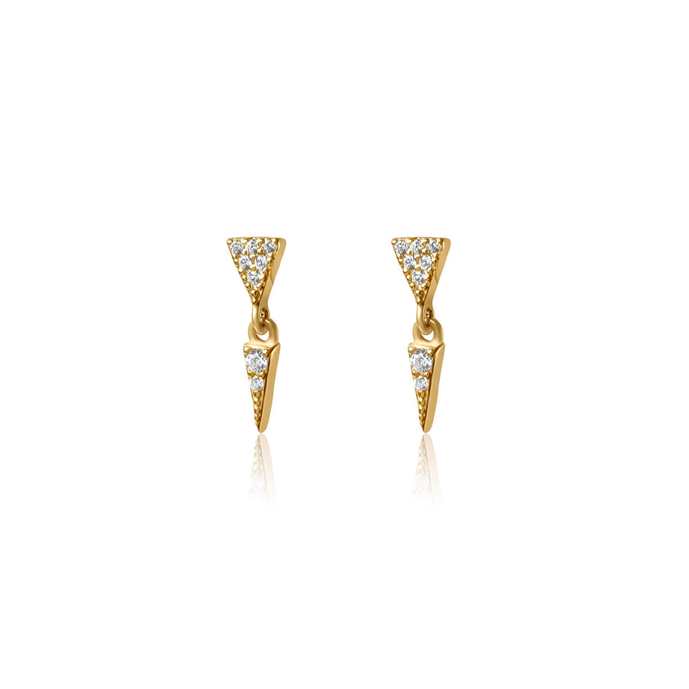 Sophisticated and chic, double triangle pavé stud earrings are the perfect everyday accessory. A little bit of sparkle finishes off this sleek look.