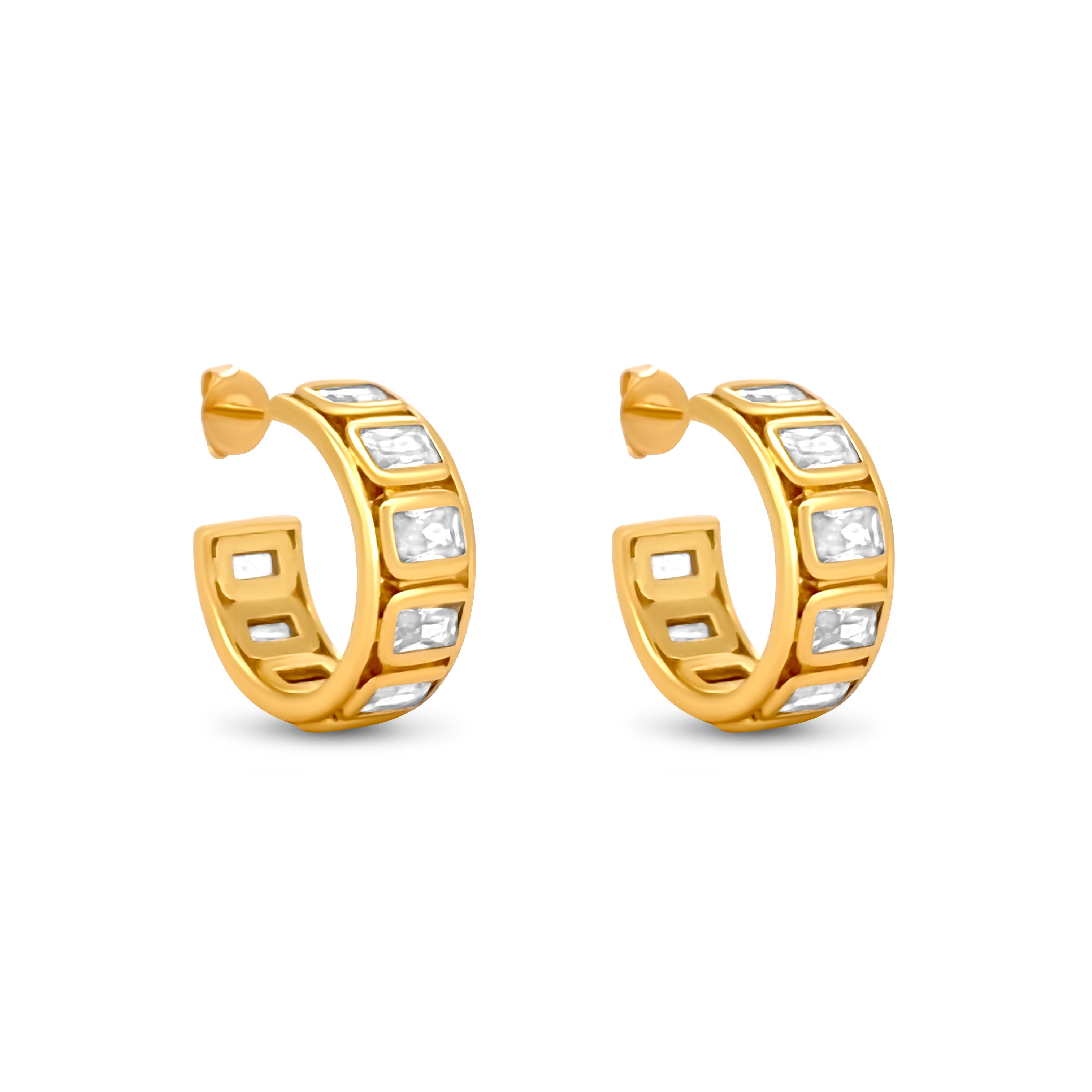 The SAMIRA Hoop Earrings offer a sophisticated blend of elegance and modern design. Featuring rectangular zirconia stones, these hoops exude a refined, timeless charm. Their sleek shape and dazzling sparkle make them the perfect accessory for any occasion, adding a touch of class to both day and evening looks. SAMIRA is a must-have for those who appreciate understated luxury with a statement-making edge.