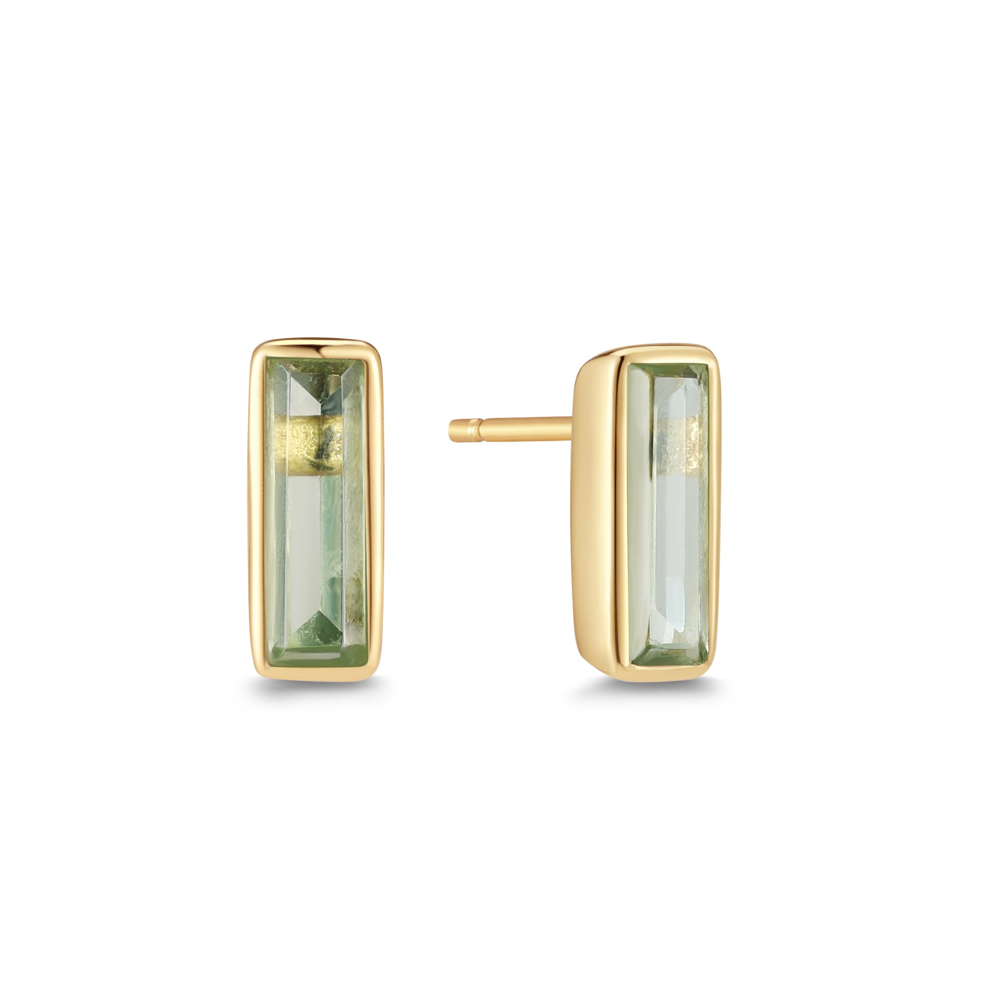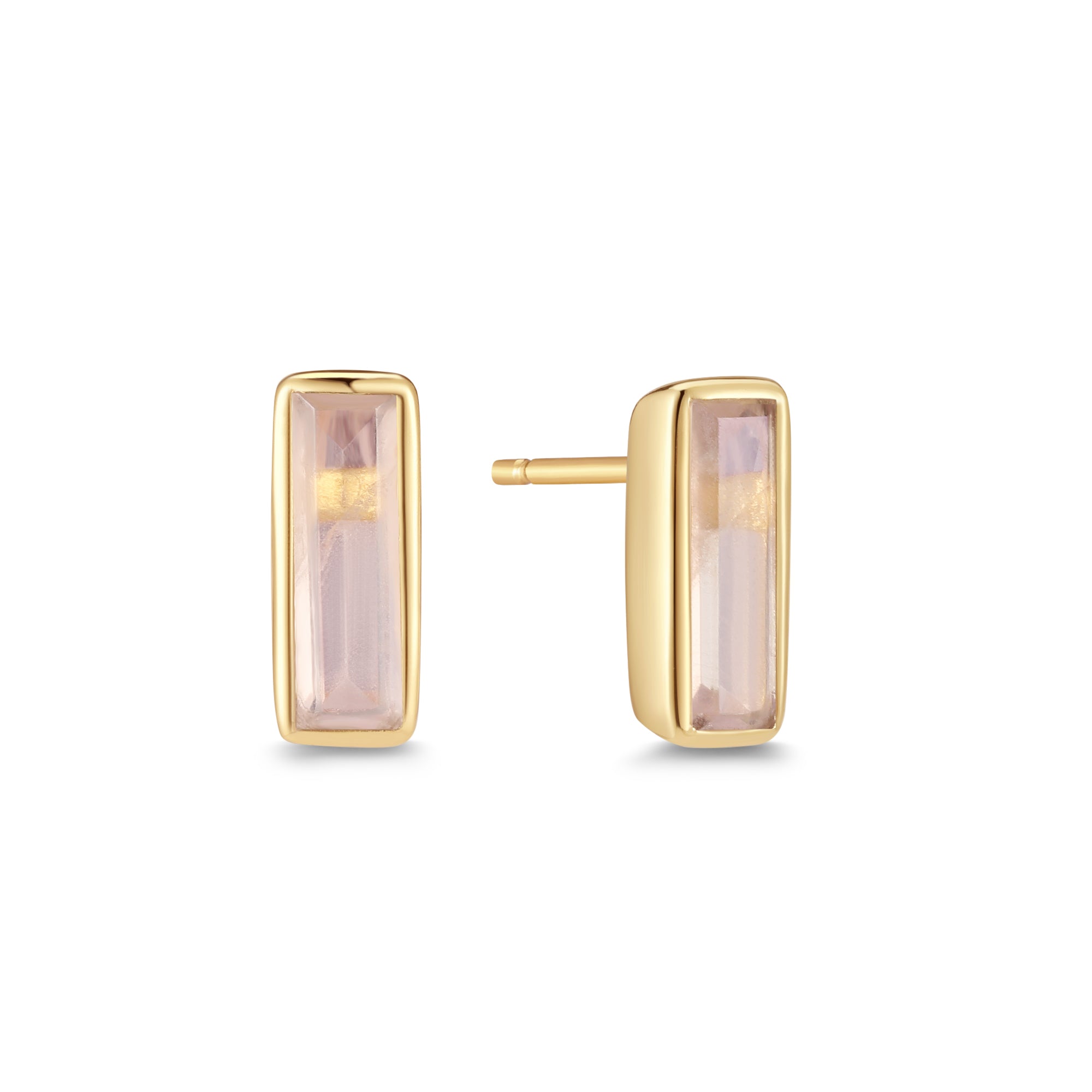 Sophistication in three stones. The Irida Baguette Studs blend Rose Quartz, Peridot Hydro, and Black Onyx into a versatile design — romantic, vibrant, and grounded all at once. Perfect for layering or wearing solo, they add instant elegance to any look.