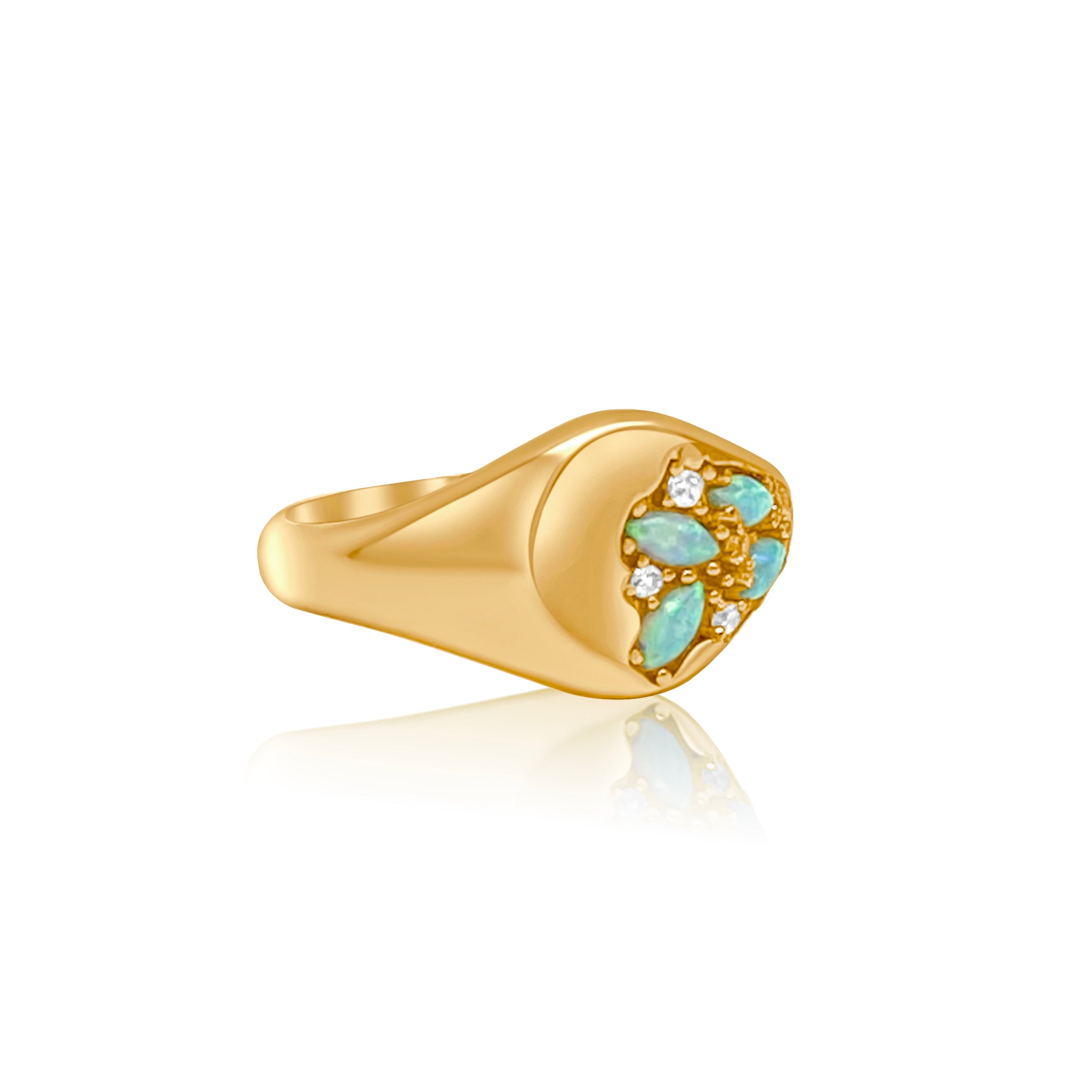 So, you need a little something blue? We totally get it. The opals in this signet ring are mesmerizing and will give your ensemble just the right amount of shine. When paired with its zirconia accent, it's sure to make a statement.