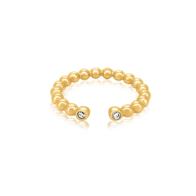 Enhance your jewelry collection with this stunning 18k vermeil ring. Carefully crafted with two round cut cubic zirconia, it boasts an elegant and simplistic design. The delicate beaded pave detail adds a touch of sophistication, making it the perfect foundation for your bold stacking look.